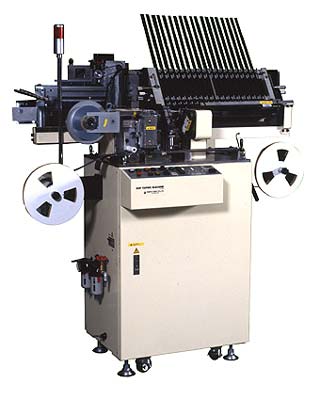粘着式紙テープ又は、エンボステープに自動テーピングする兼用タイプの機械です。 サイズの異なるSOPでも治具交換することで短時間で運送の切り替えが可能(SOJ等の対応も可能)